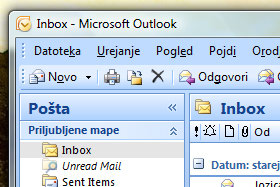 Prikažejo se vse mape v Outlooku.