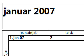 Jaz bom natisnila kar celotno leto 2007. Kliknite na gumb V redu in natisnili boste prazen koledar. Lahko pa si koledar tudi prej ogledate tako, da kliknite na gumb Predogled. |