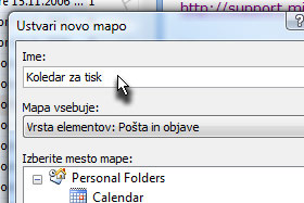 V polje Ime vpšiite poljubno ime. Jaz sem vpisala Koledar za tisk. ime drugače ni važno. Ne zaprite še okna... |
