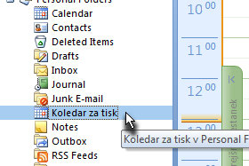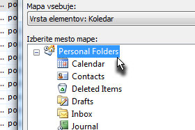 Jaz sem označila Personal Folders (Osebne mape). Kliknite na gumb V redu. |