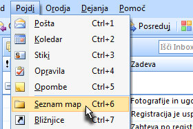 Kliknite na Pojdi in izberite Seznam map. Lahko pa pritisnite tudi tipki CTRL + 6. |