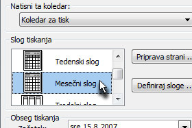 V oknu Slog tiskanja določite poljuben slog. Jaz sem izbrala Mesečni slog. Ne zaprite še okna... |