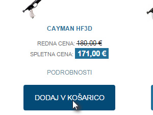 ![]() Poiščite izdelek, ki vam je zanimiv in kliknite na gumb Dodaj v košarico. Za več informacij o artiklu pa kliknite na povezavo podrobnosti. |