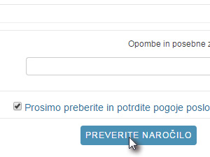 ![]() Označite pogoje in kliknite na gumb Preverite naročilo. Na vaš elektronski naslov boste prejeli tudi potrditev naročila. |