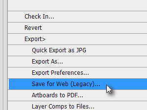![]() V novem oknu označite pod Export> Save for Web (Legacy)... |