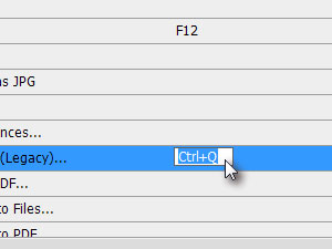 ![]() In na desni strani kliknite v okno za nastavljanje bližnjice ter pritisnite poljubno kombinacijo tipk. Jaz sem nastavil Ctrl + Q. Adobe Photoshop me bo opomnil, da je ta kombinacija že v uporabi, vendar sem opozorilo ignoriral, saj te blčižnjice nisem nikoli uporabljal. |