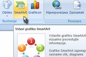 Ali si kdaj želite določeno informacijo prikazati tudi vizualno? Sedaj nam Word 2007 omogoča zelo pregledne vizualne prikaze v okviru funkcije SmartArt.