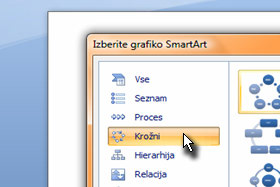 Na sredini okna se nam prikaže več oblika krožnega prikaza.