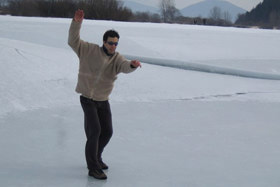 Jaz sem odprl fotografijo prijatelja Aleša, ki se zabava na cerkniškem jezeru.