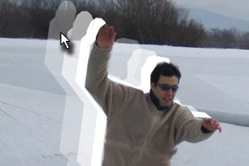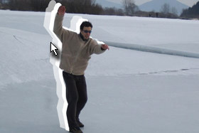 Sedaj pa z miško držite na dokumentu in premikajte prej obarvani layer v nasprotno smer, od koder se objekt ali osebna premika (glej sliko).