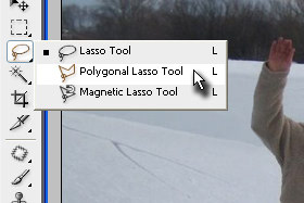 Držite z miško na orodju Lasso Tool (bližnjica je tipka L), da se prikažejo še ostala orodja. |