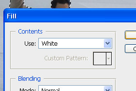 Odpre se okno za zapolnjevanje layerja. Polje Use preko izbirnika določite White in kliknite na gumb OK. |