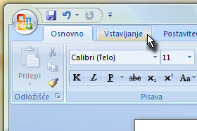 Kliknite na zavihek Vstavljanje.