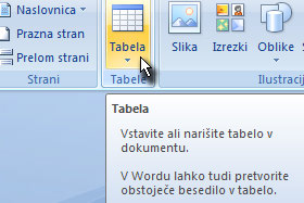 Kliknite na Tabela... |