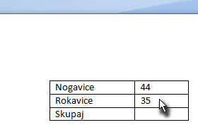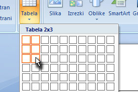Improvizacija je seveda dobrodošla. Kliknite z miško znoraj tabele. |
