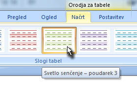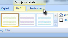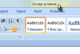 Zgoraj v najvišji orodni vrstici se prikaže zavihek Orodja za tabele.