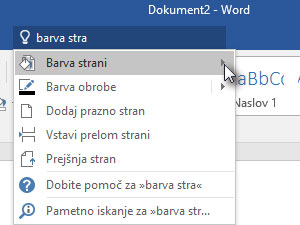 ![]() Ponovno kliknite v polje Povejte, kaj želite narediti ... in tokrat poskusite z barvo strani (glej sliko) ... |