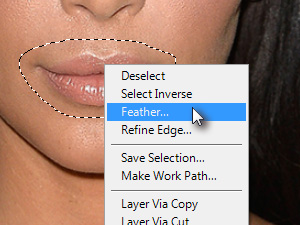 ![]() Nato kliknite z desnim miškinim gumbom na dokument in izberite Feather... Orodje Lasso Tool naj bo še vedno označeno, da boste imeli na voljo ta ukaz.