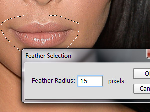 ![]() V novem oknu nastavite Feather Radius 15 pixels in kliknite na gumb OK. Če je vaša fotografija večje dimenzije, nastavite večji feather. Saj boste videli. |
