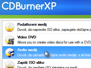 ![]() Odprite CDBurnerXP, izberite Avdio medij in kliknitena gumb V redu. |