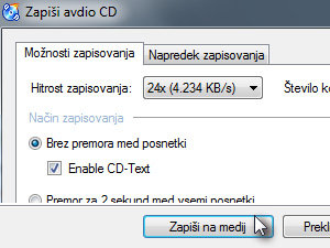 ![]() V novem oknu pustite privzete nastavitve in kliknite na gumb Zapiši na medij. |