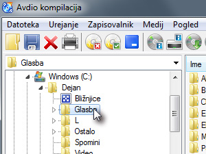 ![]() V novem oknu na levi strani zgoraj poiščite mapo z glasbo. |