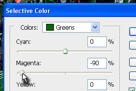 Sedaj pa drsnik Magenta premikajte na levo stran (glej sliko).