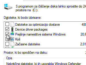 ![]() Po nekaj momentih se vam bo v aplikaciji prikazalo več možnosti za čiščenje. Lahko izbirate poljubno, jaz pa bom v mojem primeru po nadgradnji sistema Windows 10 označil Prejšnje namesitve sistema Windows. |