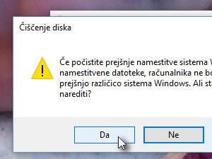 ![]() Aplikacija vas bo kmalu po tem še enkrat opozorila. Kliknite na gumb Da in Prejšnje namesitve sistema Windows se bodo pobrisale. |
