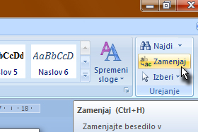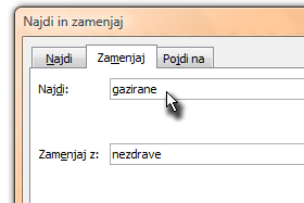 Poleg funkcije zamanjaj, pa lahko uporabljamo tudi samo funkcijo najdi.