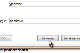 okno kamor pod najdi vpišemo besedo, katero želimo zamenjati, pod zamenjaj z, pa vpišemo novo besedo.