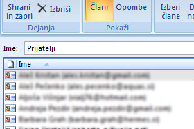 ![]() Spodaj v oknu Člani boste opazili vse stike, ki ste jih dodali. |