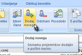 ![]() Če bi radi dodali stik, ki ga nimate shranjenega v Outlooku, kliknite na gumb Dodaj novega. |