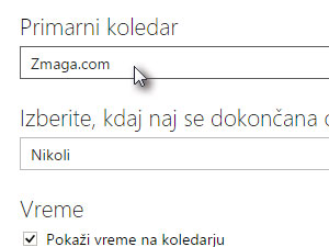 ![]() V oknu z nastavitvami Primarni koledar preko izbirnika nastavite ravnokar ustvarjenega. |