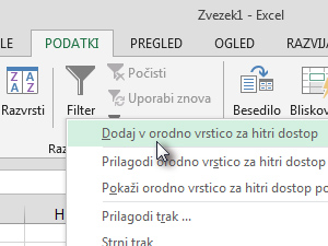 ![]() ... kliknite nan z desnim miškinim gumbom ter izberite Dodaj v orodni vrstico za hitri dostop. |