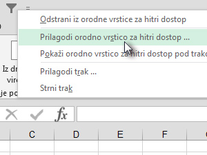![]() Kliknite na ikono z desnim miškinim gumbom ter izberite Prilagodi orodno vrstico za hitri dostop ... |