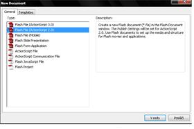 Za tip dokumenta izberite Flash File (ActionScript 2.0). Nato z desno miškino tipko kliknite na prazen dokument in izberite Document Properties...Poljubno nastavite fps-je in velikost dokumenta.