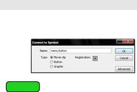 V polje napišite menu button. Za Type izberite Movie Clip. Kliknite OK. |