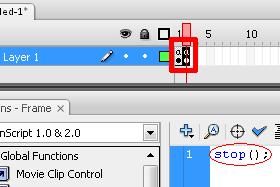 Notri vpišite: stop(); Ponovite enako za frame 2; vpišite naslednjo kodo pod Actions: stop(); |