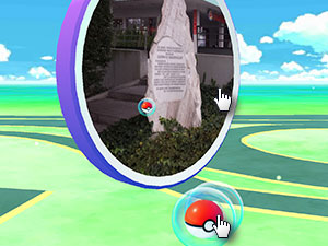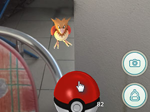 ![]() Pokemon se vam bo prikazal na vašem zaslonu, katerega morate dobiti na sredino in nato večkrat vržti na njega žogico iz sredine. |