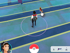 ![]() Prikazal se vam bo zemljevid z vašim likom na sredini. V spodnjem desnem kotu je prikazana vrstica, ki prikazuje, če so v bližini pokemoni in ko bodo le-ti blizu, se vam bodo tudi prikazali. Seveda morate fizično hoditi okoli, torej premikati vaše noge in roke :) Tapnite na njih. |