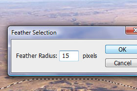 ![]() Kliknite zgoraj na Select, Modify in izberite Feather Selection... |