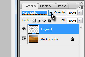 ![]() Layerju z kraterjem določite senčenje na Hard Light (glej sliko). |