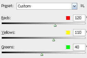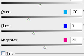 ![]() Določite Cyans -30, Blues 0 in Magentas 70. |