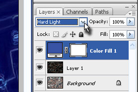 Sedaj pa nastavitvenemu layerju določite senčenje na Hard Light (glej sliko).