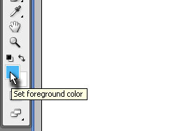 Kliknite na prvi izbrinik barve (Set foreground color), v polje # vpišite vrednost 49b7f6 in potrdite na gumb OK.