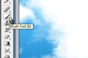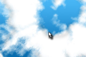 Sedaj pa s čopičem naričite sence na robove ustvarjenih oblakov (glej sliko).