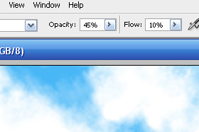 Zgoraj določite Opacity na okoli 45% in Flow 10%.