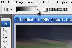 Pritisnite tipko D, da nastavite črno barvo (bela spodaj) in izberite orodje Gradient Tool (bližnjica je tipka G).