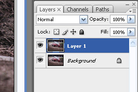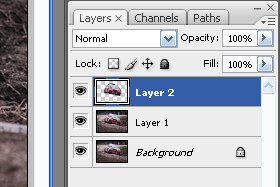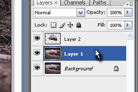 Izberite layer z izrezanim avtomobilom.